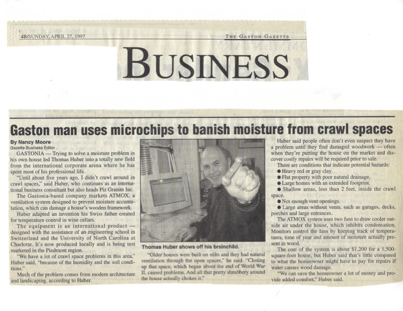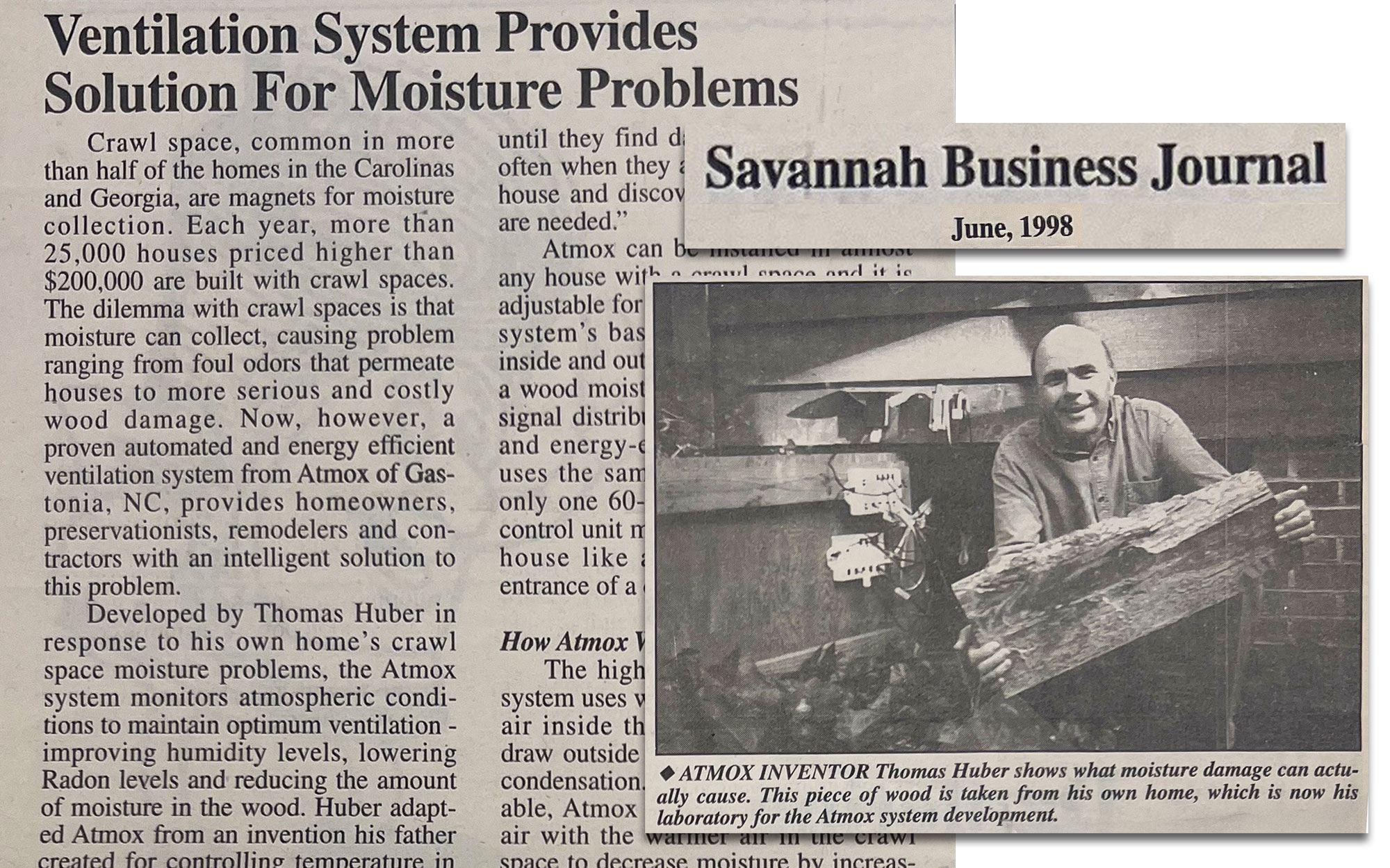 In the mid-1990s, Thomas Huber discovered a widespread problem in the Carolinas – high humidity in crawlspaces – with no solution. It all started when his neighbor’s house in Gastonia, North Carolina had a $30,000 repair to its structure due to wood rot and termites caused by high humidity levels in the crawlspace. In talking to the contractor and termite inspector, he realized that his house would be next unless he did something about his own crawlspace.
