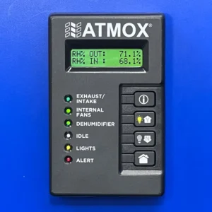 The ATMOX controller also has the ability to control the dehumidifier to make sure it operates efficiently and at optimal times for drying. The dehumidifier operates when the inside rH is above 63% and will run until rH drops below 58%.